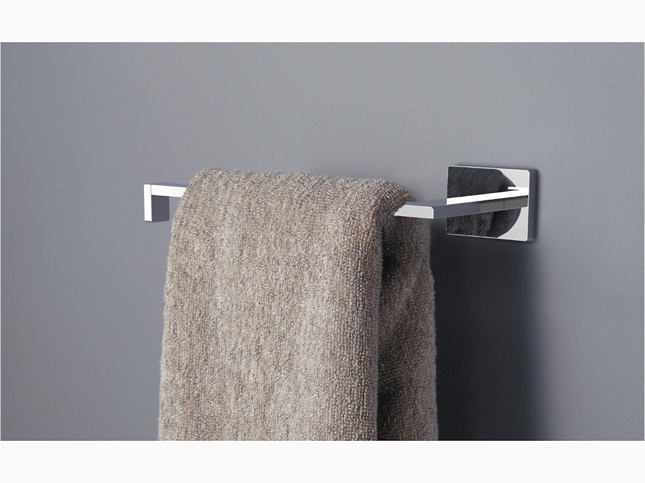 With clean lines and square features, the Complementary™ towel arm has a sleek look that helps create a clutter-free, easy-to-clean bathroom atmosphere. Minimalistic lines lend themselves to a spectrum of modern design, blending precise angles with geometric forms to make a quiet statement in any bathroom space. The towel arm creates a dedicated place for wet towels to hang dry.