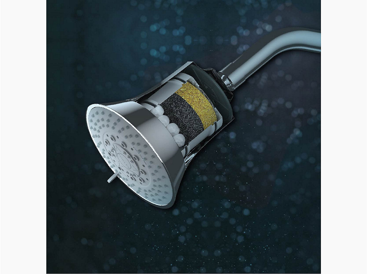 - Five-layer filtration system reduces scale buildup in your shower and includes an activated carbon filter to reduce impurities such as chlorine and heavy metals