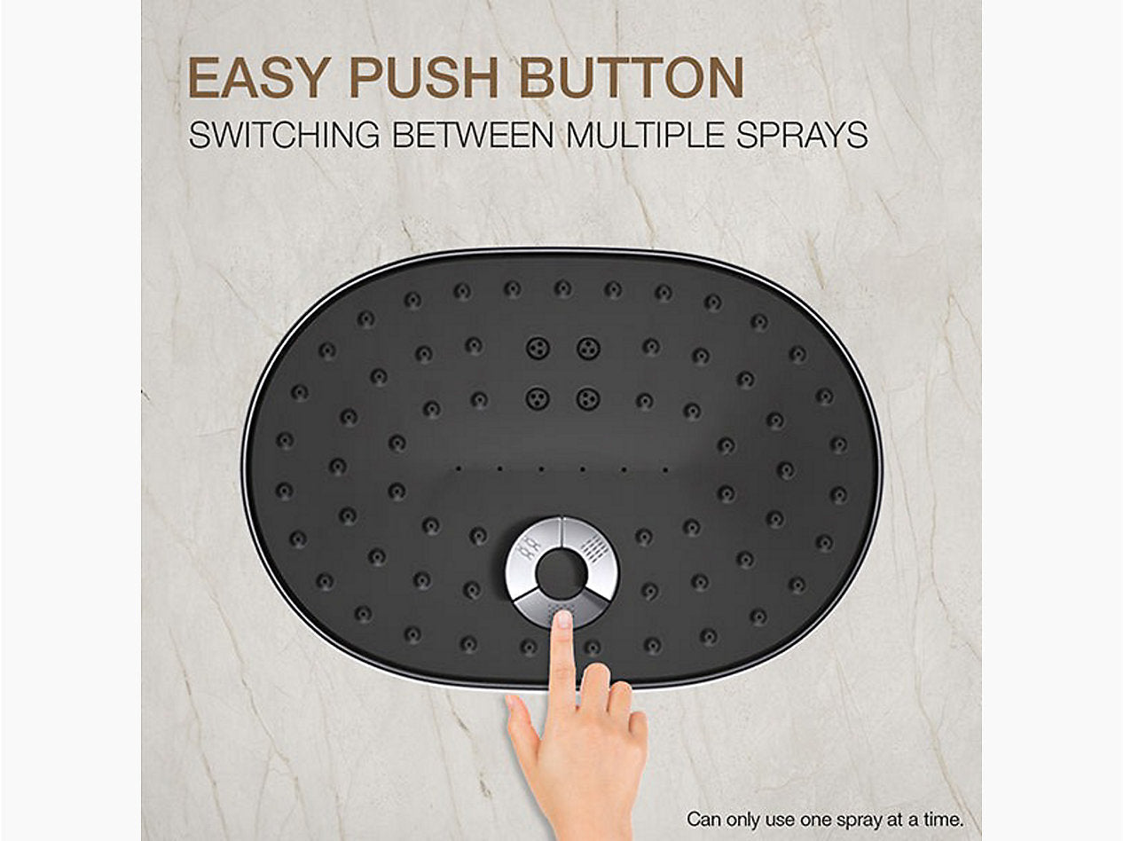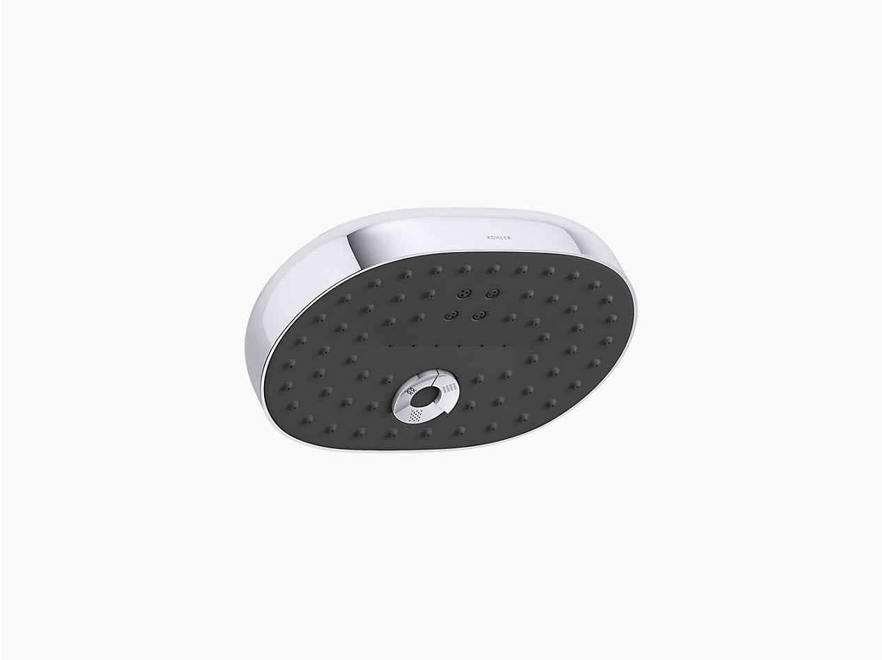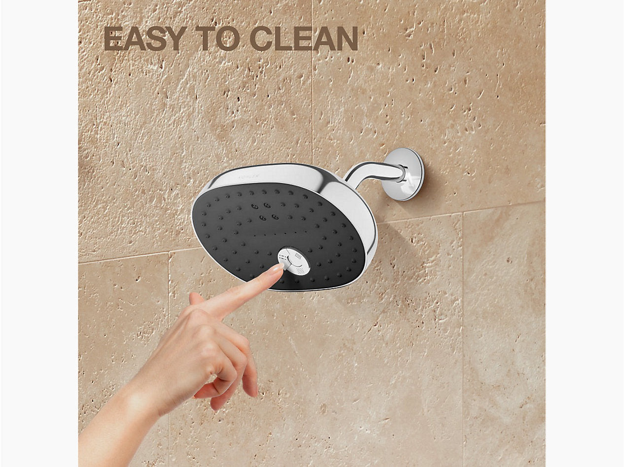 Relax in a shower that fully soaks, restores, and targets sore muscles — all at the touch of a button. The oblong KOHLER Statement™ multifunction showerhead lets you choose from three spray experiences. Full Coverage with Katalyst air-induction technology for a drenching spray experience, a super-fine luxuriously soft Cloud spray experience, or more-focused, Deep Massage kinetic cross-streams, angled to relieve sore muscles. The multifunction showerhead features intuitive mode selector buttons and comes attached to an offset ball joint for 180-degree rotation, adjusting to any body height. Its sleek, minimalist design complements many other KOHLER faucets and accessories.